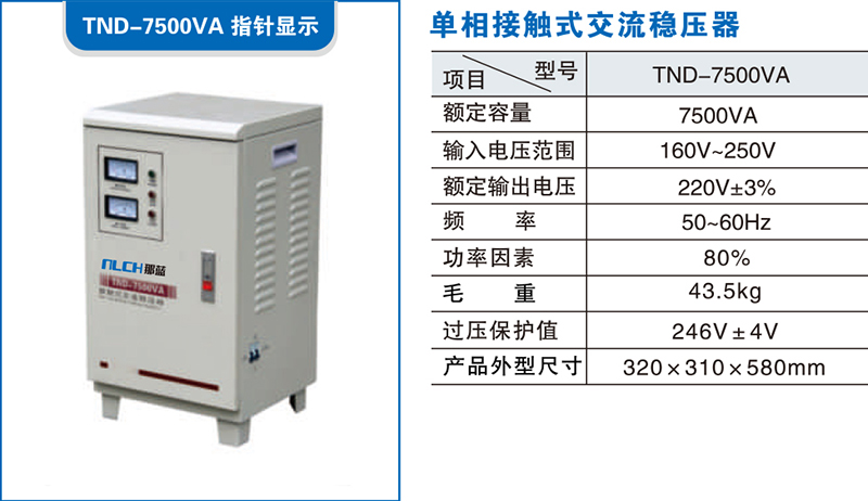 TND-7500VA單相接觸式交流穩(wěn)壓器
