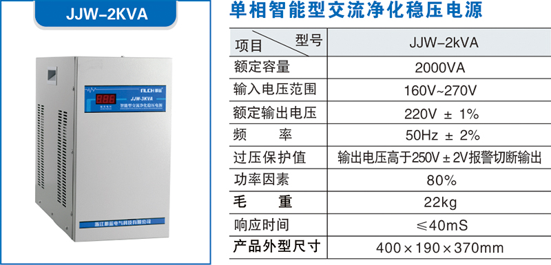 JJW系列智能型交流凈化穩(wěn)壓電源集凈化、穩(wěn)壓、抗干擾和自動(dòng)保護(hù)等多功能于一體,具有穩(wěn)壓范圍寬、響應(yīng)速度快、精度高、抗干擾、抗負(fù)載沖擊能力強(qiáng)、壽命長(zhǎng)、噪音低等優(yōu)點(diǎn)。